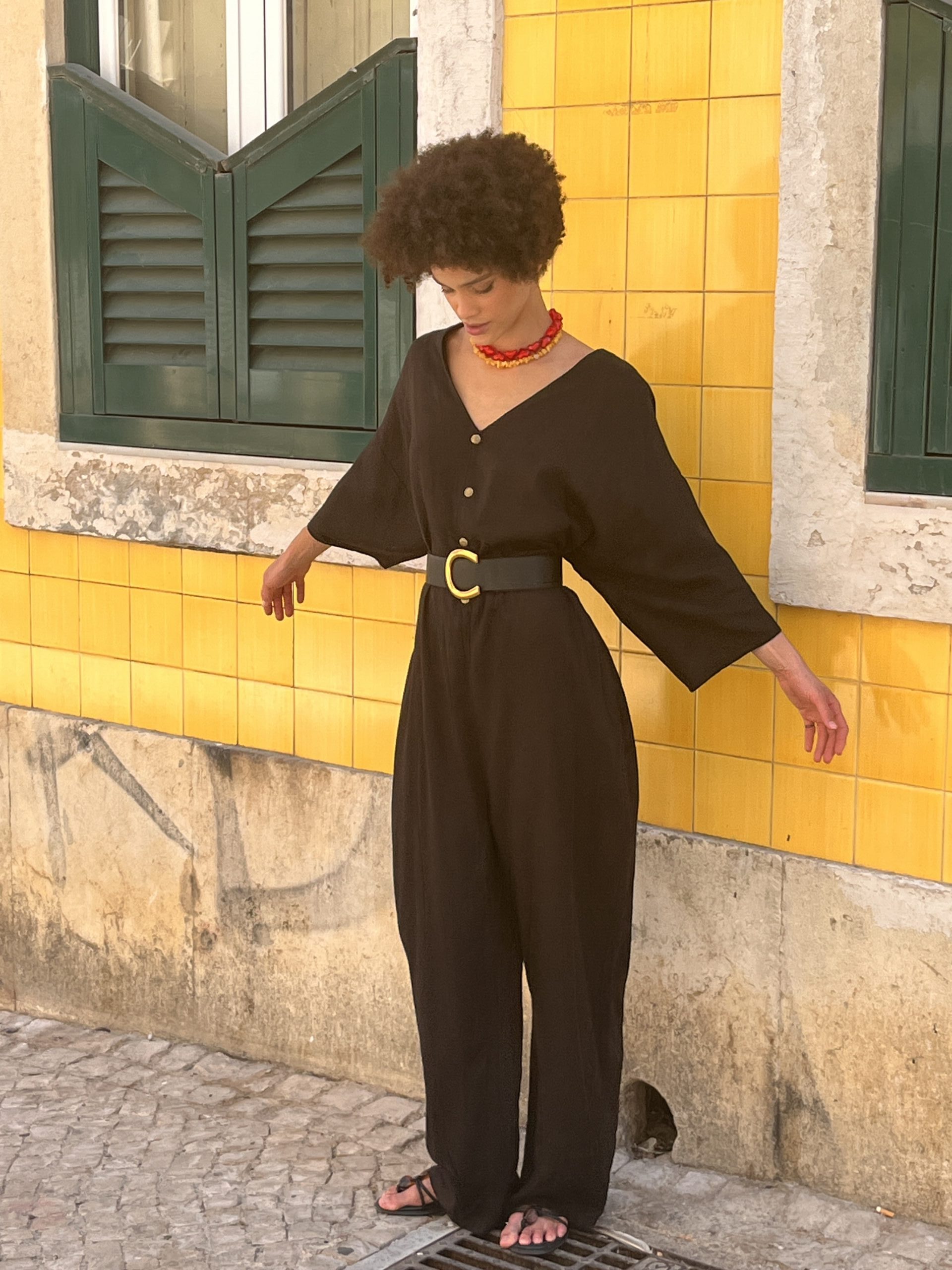 "The design is pure, conscious minimalism. My jumpsuit has become my uniform—perfect for city life here in Lisbon and effortless for travel. This is slow fashion done right."