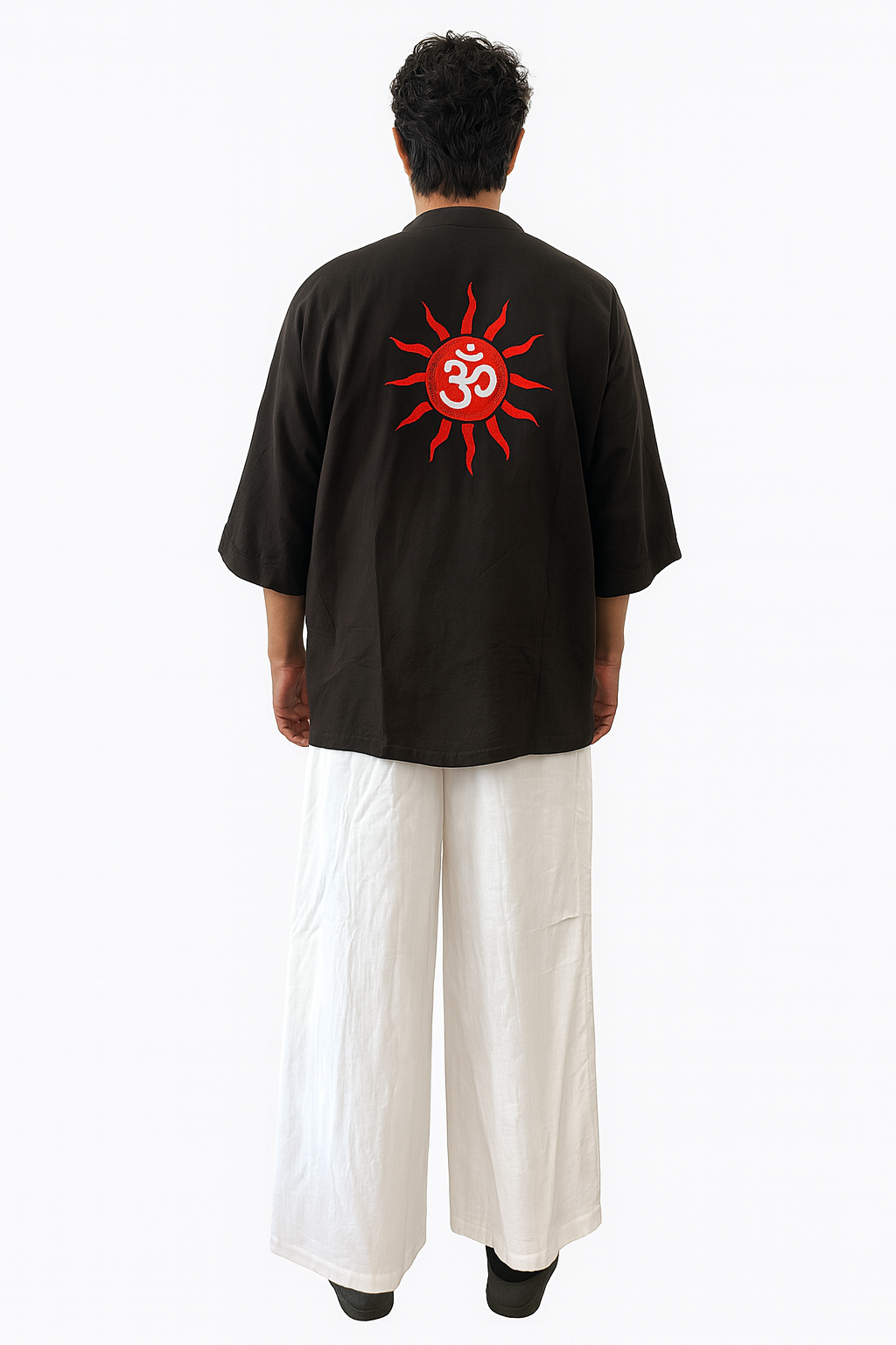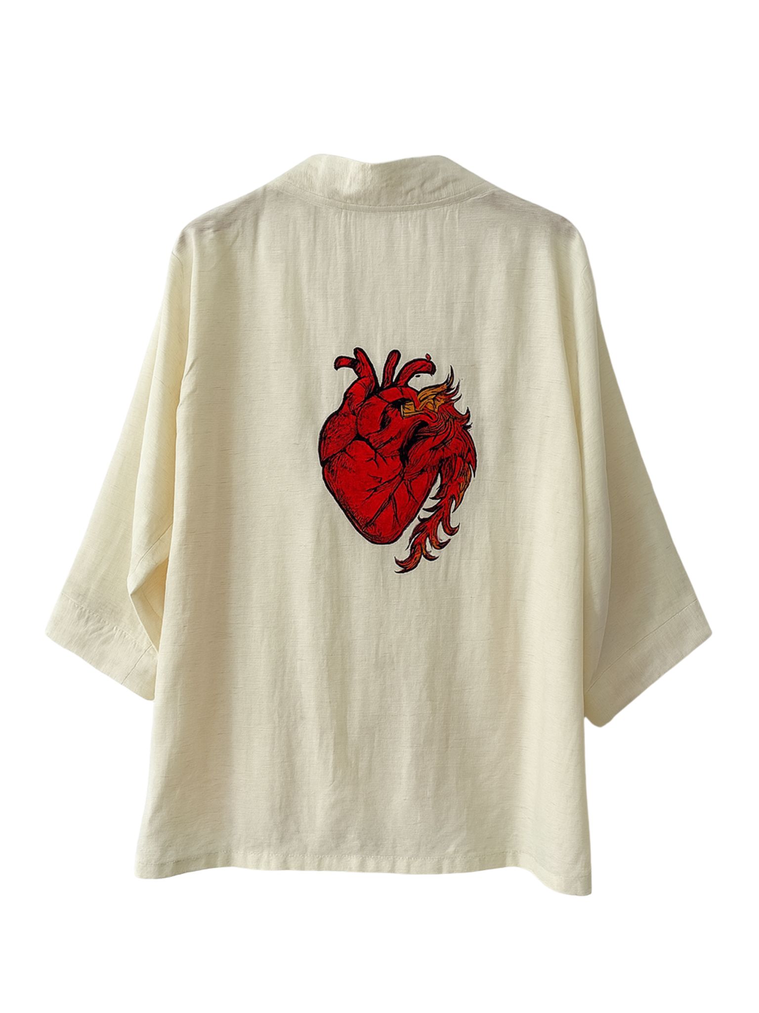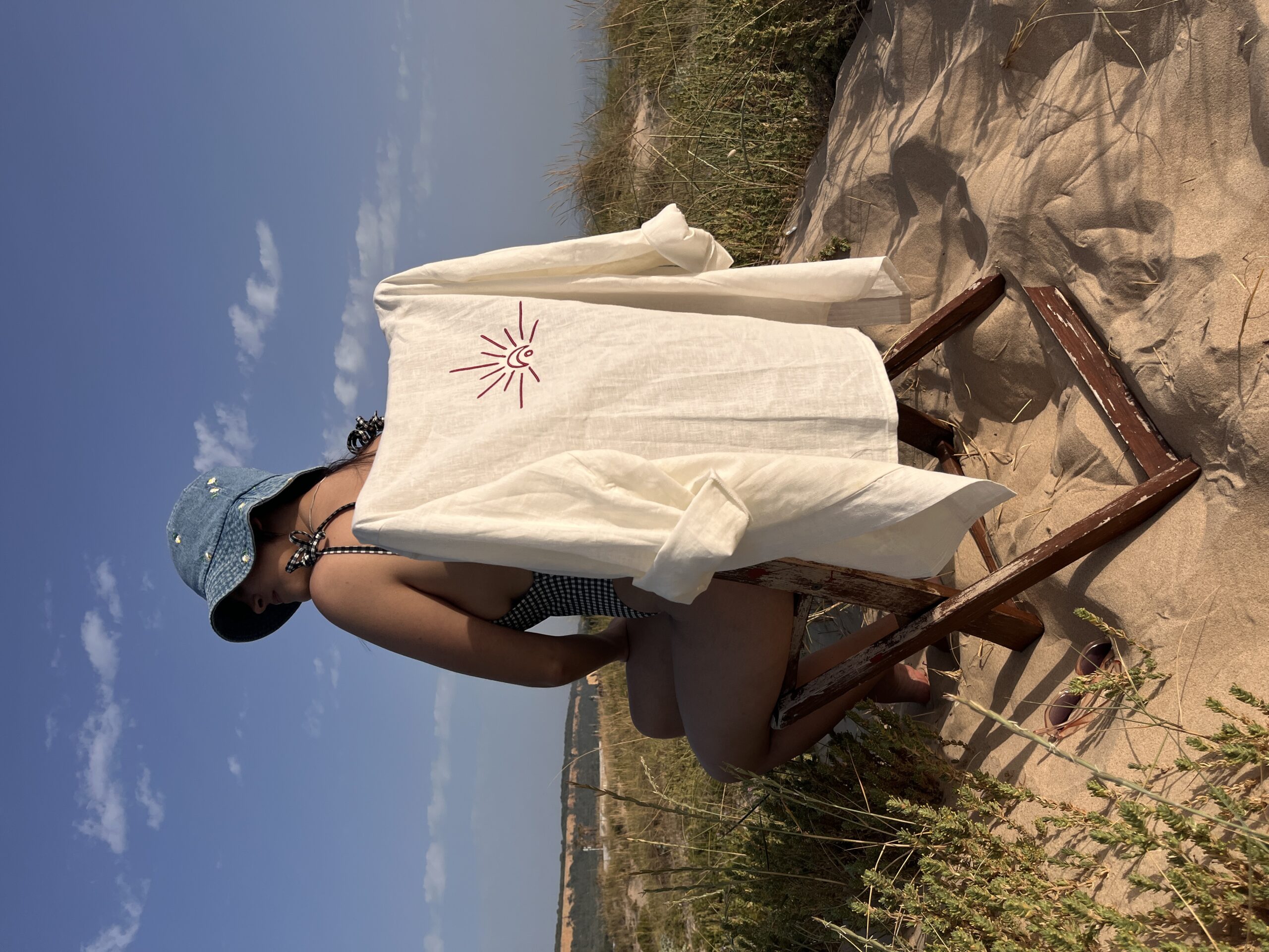 A versatile linen kimono that flows with your style. Available in a range of colors, with the option to personalize it with your chosen “power animal,” embroidered in thread alongside Elemental’s emblem — the sun that unites us.