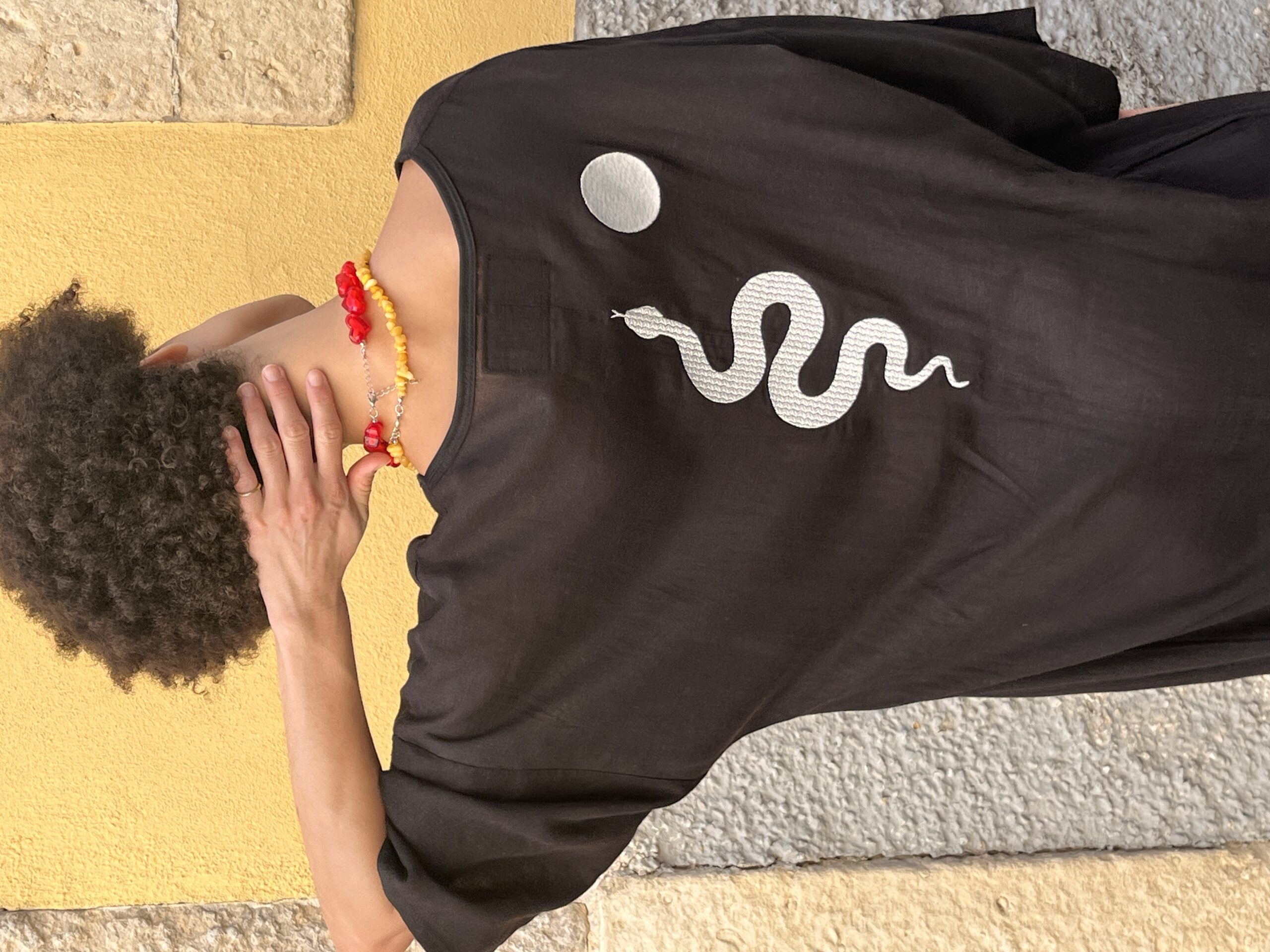 Available in small, medium, and large, in natural tones (green, black, ivory, blue). What makes it special: you can choose your “power animal,” embroidered on the back with Elemental’s signature emblem — the sun that unites us.