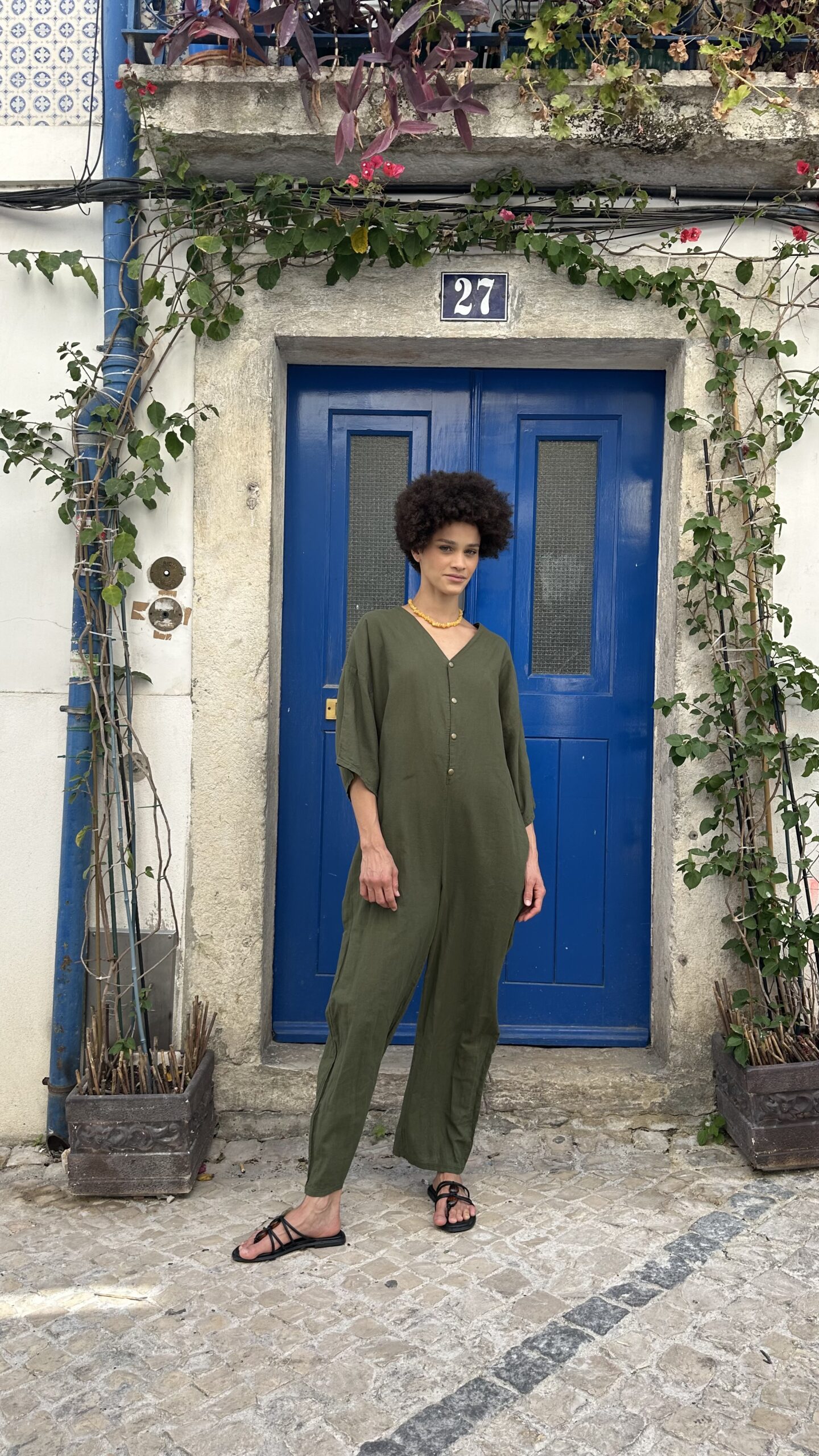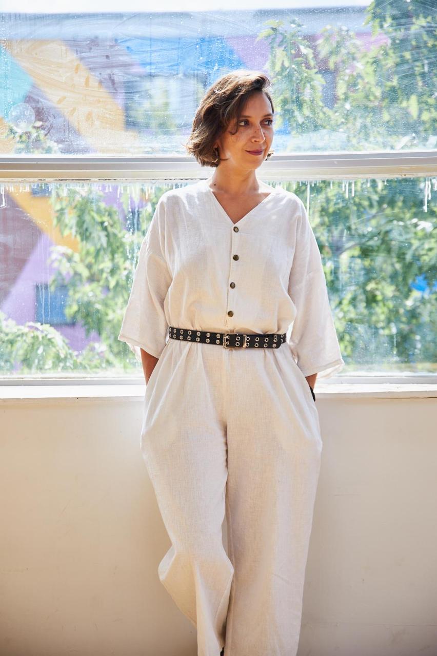 Stylish, bold, and fluid, this linen jumpsuit (known in Portugal as macaco) is versatile enough to be playful or elegant. Made from sustainable organic linen, it adapts to climate and mood, pairing as easily with urban boots as with barefoot freedom.