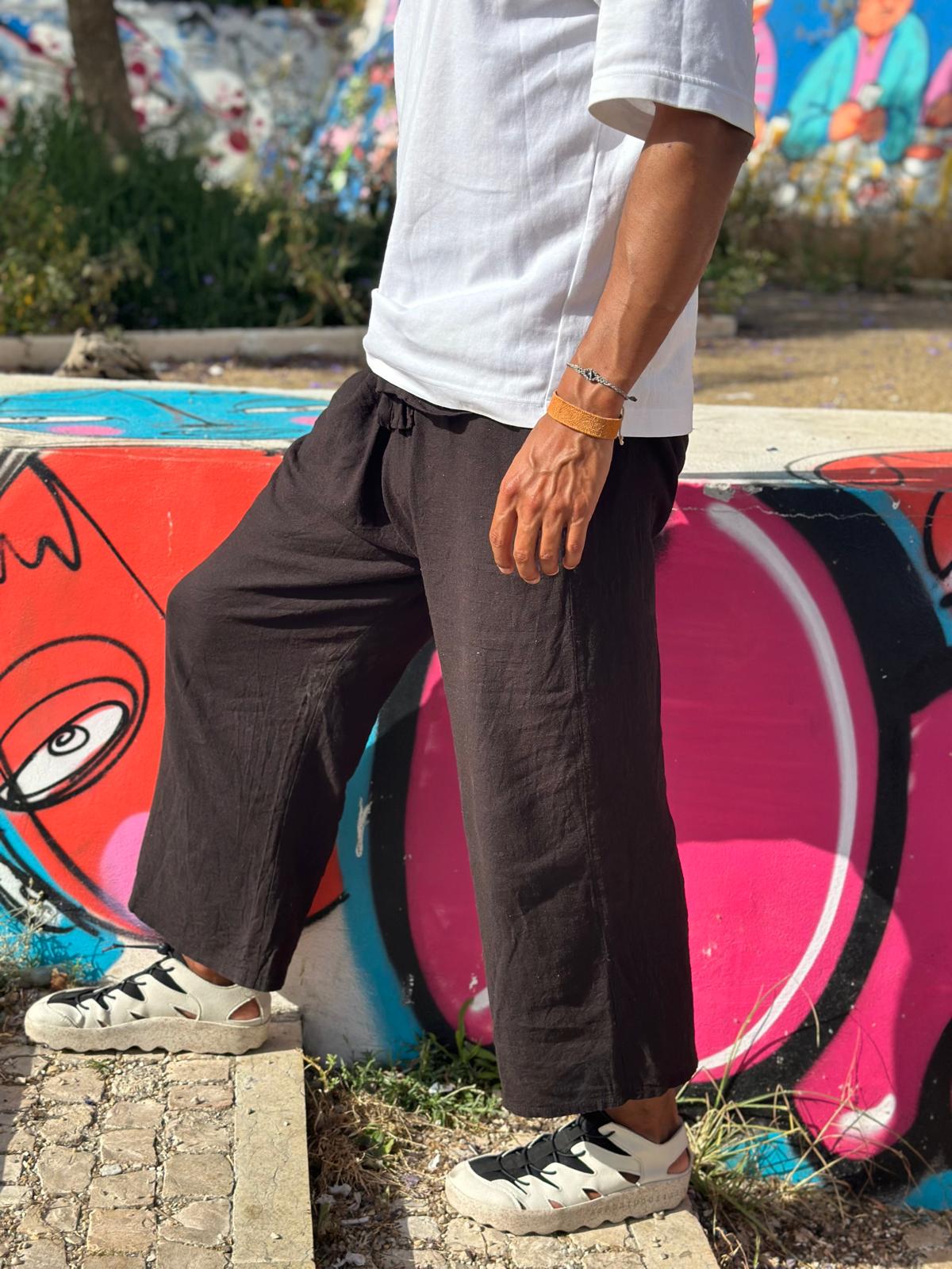 Inspired by yoga, these wide linen pants are all about freedom and movement. One size fits all, designed without gender, with a soft but strong fabric that flows between relaxation and urban style. Pair them however you like and embrace your own rhythm.